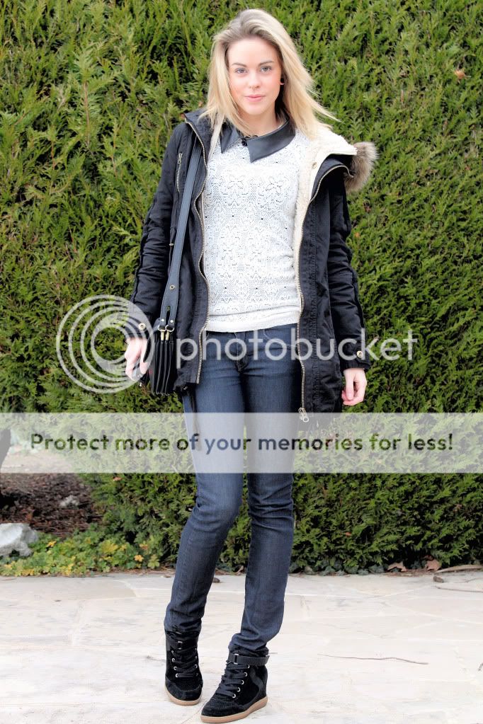 Pour ma tenue d'aujourd'hui, confort et simplicité étaient également de rigueur. Une marinière, un jean et mes nouvelles sneakers de chez celle que l'on ne présente plus, Isabel Marant. Je les ai échangé contre mes bleu marine à scratch qui étaient malheureusement trop petites. Je remercie d'ailleurs Amanda  qui est venue accompagnée de son gentil petit garçon pour procéder à l'échange